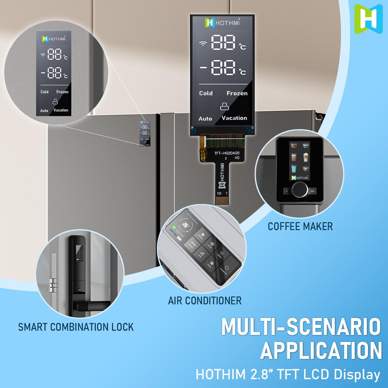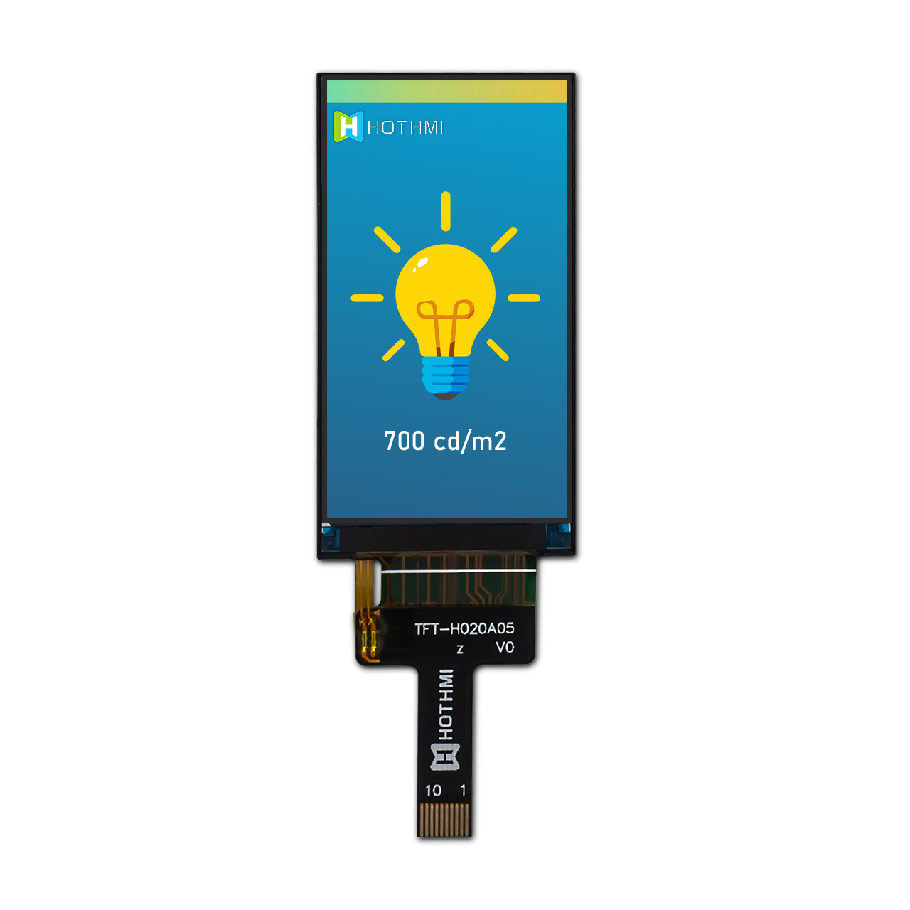 TFT-H020A05QVIST7N10 | 2.0" LCD 模块 | 170x320 像素 | 串行 SPI 接口 | 10 针 FFC ZIF 连接 | 可选配电阻/电容触摸屏